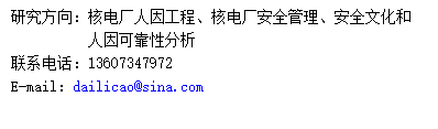 工学博士,教授,博士生导师,英国365上市公司人因研究所所长,日本京都大学YOSHIKAWA实验室,英国西南威尔士大学,美国纽约州立大学合作工作者和访问学者。主要研究方向为核电人因工程、核电厂安全管理、安全文化和人因可靠性分析。先后主持和承担国家社会科学基金,国家自然科学基金、国防军工技术基础计划科研项目和纵向科研项目20余项,在Reliability Engineering and Safety Science, Safety Science,Engineering Science, Fuzzy sets and systems,系统工程等国内外期刊发表文章100余篇,获得湖南省科技进步二等奖,国防工业科技进步二等奖多项。