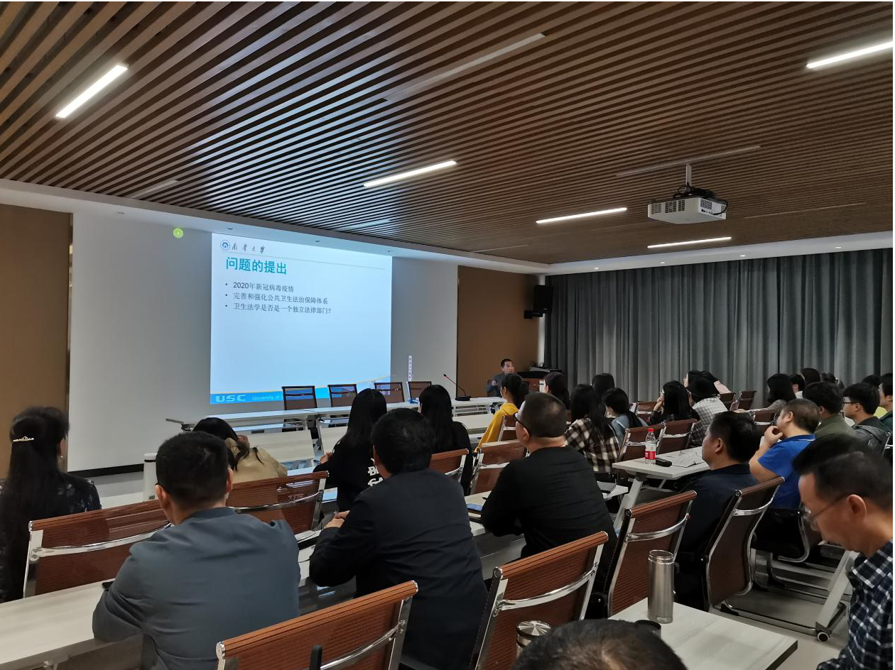 本次讲座内容主要分为三大部分。首先,肖卫华教授根据今年新冠病毒疫情提出了如何完善和强化公共卫生法治保障体系,要不断加强对《突发事件应对法》的完善,生命健康、人生自由和社会秩序要全局考虑。其次,根据不同专家的观点探讨了卫生法学作为一个独立法律部门调整的对象是什么,并发表了自己的观点,认为《卫生法学》的调整对象是卫生关系,卫生关系是在维护、保障生命安全和心身健康过程中进行卫生活动所产生的社会关系。最后,和大家探讨了《卫生法学》的根本特征,《卫生法学》为健康权益法,立法确认、保护、救济一系列健康权益,包括积极保障、事前保障、预防性救济机制,而其他部门法则不是将保护健康权作为根本特征。