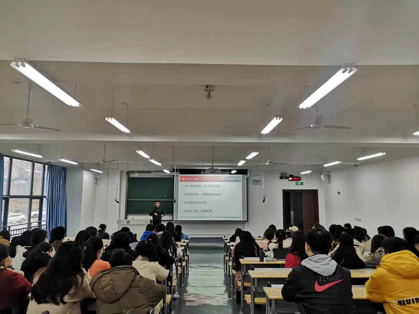 梁博士用通俗易懂的语言以及自身大量的论文写作经验向同学们介绍和展示了论文如何进行选题和写作,给予了同学们指导性的意见,对今后的同学们的论文写作有很大的帮助。