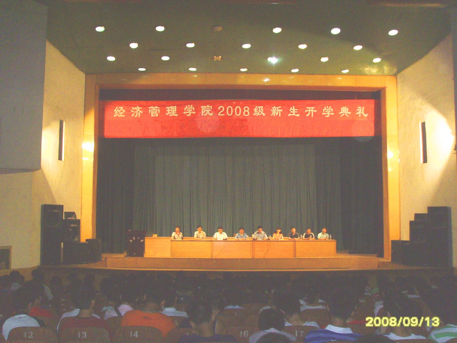 2008年9月13日上午9:30,公司2008级新生开学典礼在南校大礼堂举行。公司党委书记陈炳炎,经理肖东生,副经理聂绍芳、刘春以及各系主任、系党支部书记、新生班主任、全体辅导员出席开学典礼。