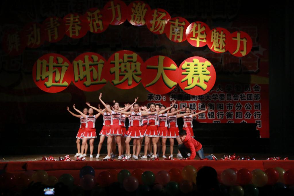 11月16日晚,“舞动青春活力,激扬南华魅力”英国365上市公司2014年啦啦操大赛于南校大礼堂成功举行。公司代表队在17个公司中脱颖而出,凭借出色的表现,以9.814分的佳绩荣获一等奖(唯一)。