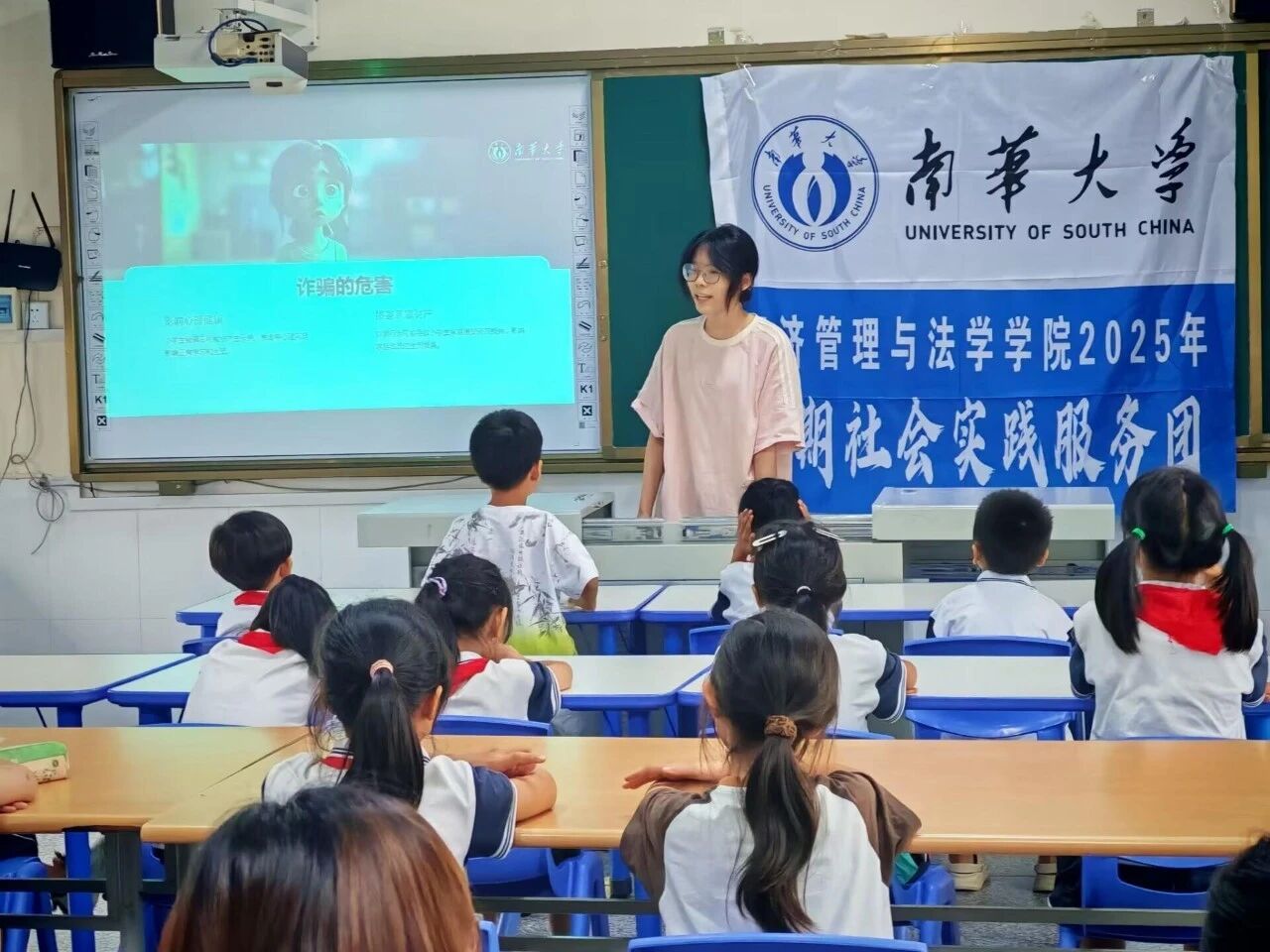 安全知识小课堂采用 PPT 展示与演讲结合的生动形式推进。志愿者们从常见的防骗话术入手,延伸至网络防骗的种种案例,着重讲解了防溺水知识,用一个个真实发生的溺水案例敲响安全警钟。课堂上,互动问答环节将气氛推向高潮。小朋友们踊跃举手,积极回答问题,在一问一答间,安全知识深深印刻脑中,自我保护的意识也不断增强。