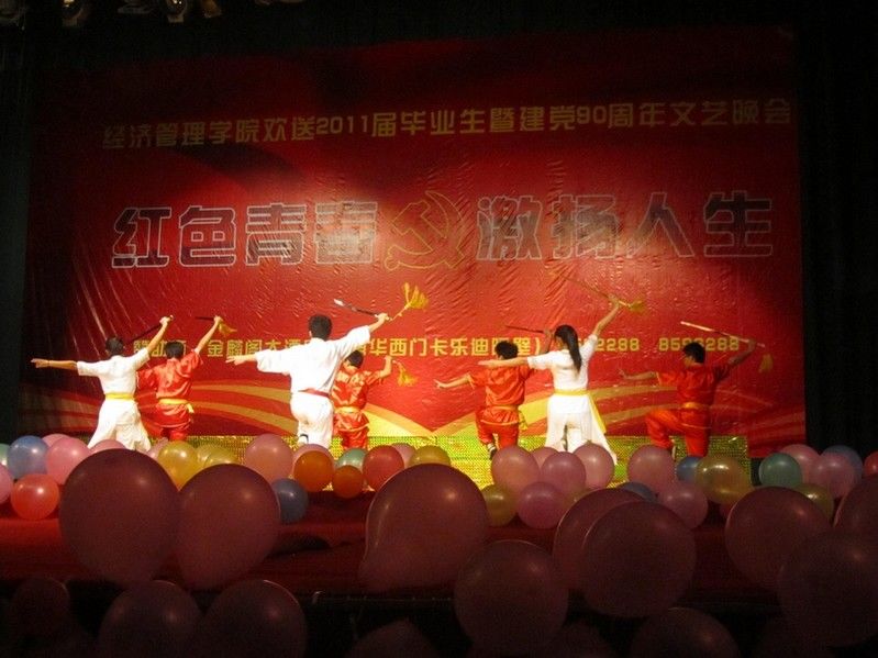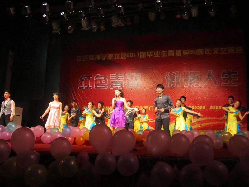欢聚的喜泪演绎着别离的伤感与惆怅,又是一年花开时,又是一年离别处,今晚的2011届毕业生即将奔赴自己丰富而多彩的人生,开始新的路程。在这个特殊的日子里,我们迎接党的90华诞,并祝福2011届毕业生,希望他们前程似锦,一路顺风。