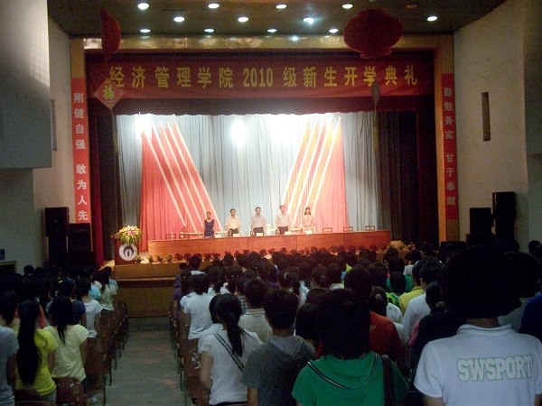 9月11日上午,公司在南校大礼堂隆重举行了2010级新生开学典礼。公司党委书记陈炳炎,经理周晓东,副经理聂紹芳、刘春老师,副书记廖迎春出席了开学典礼。365英国上市集团各系室主任、学工室老师、新生班主任和2010级新生一起参加开学典礼。
