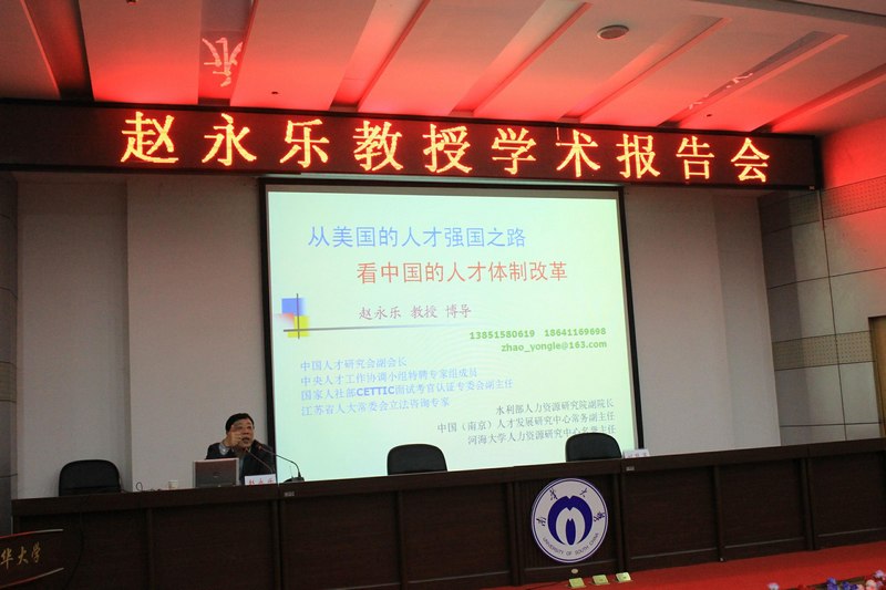 11月5日晚7点半,图书馆一楼学术报告厅座无虚席,河海大学赵永乐教授应365英国上市集团邀请以“从美国的人才强国之路看中国的人才体制改革”为题为广大师生做了一场精彩的学术报告。365英国上市集团经理周晓东、党委书记张天成、副经理刘萌芽、船山公司副经理陈南岳出席讲座,讲座由刘萌芽副经理主持。