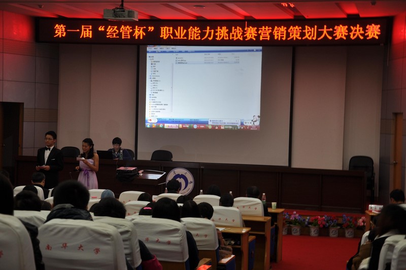 12月8日晚,第一届“经管杯”职业能力挑战赛营销策划赛决赛在红湘校区图书馆报告厅完美落幕。衡阳市移动公司市场项目部经理周琛、校团委书记谢铷鸿、校学工部副部长王永杰、校教务处副处长廖基定、公司党委宣传部副部长陈烈作为特邀嘉宾出席了本次活动。经济管理公司党委书记张天成、副经理刘萌芽参加了本次大赛。大赛聘请了刘萌芽、肖汉龙、黄知常、谢荷锋、黎赔肆五位专家担任评委。