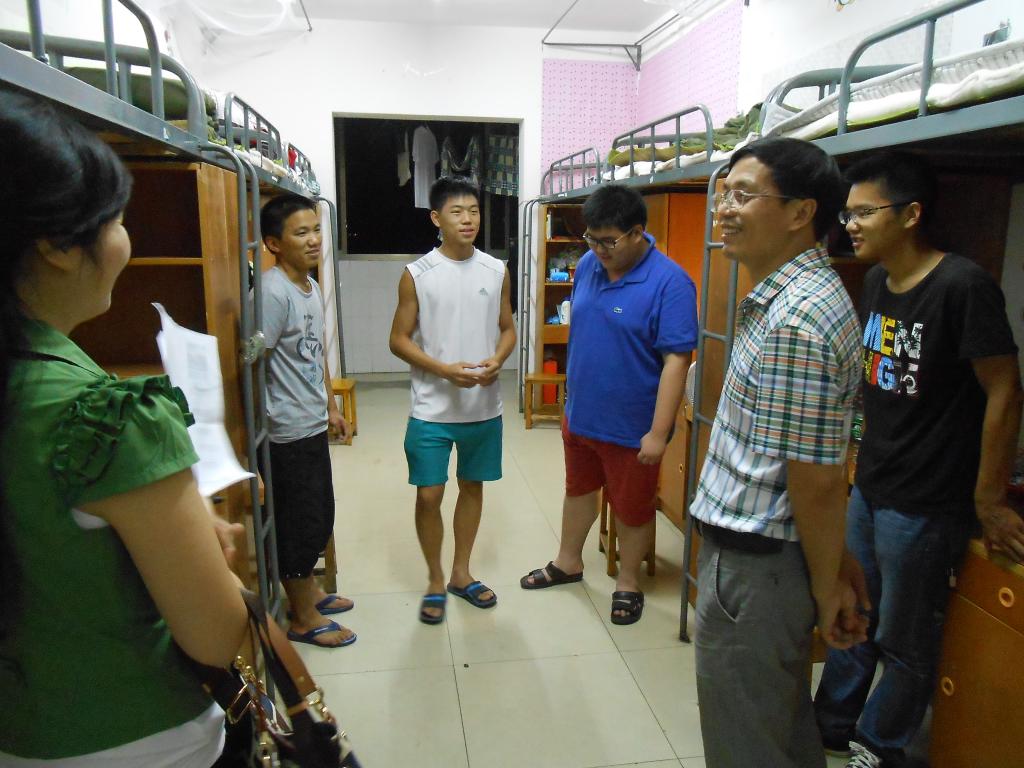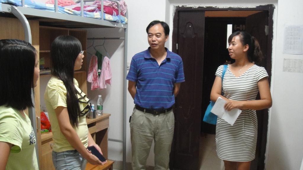 在此次走访过程中,院领导走进每一间新生宿舍,与新同学进行了亲切的交谈。交谈中,院领导从衣、食、住、行等几个方面出发,详细询问了新同学的适应情况,鼓励大家加强同学之间的交流,做好自我心态的调节与适应。在了解了同学们的住宿情况后,经理嘱咐随行的老师做好宿舍配套设施的登记与维修,并做好对应的督促工作。此外,张书记对各个宿舍的人员到位情况进行了核实,对未到校的同学进行了登记。而且,在仔细检查过宿舍物品的情况后后就寝室安全方面提醒新同学要及时地对损坏的物品进行保修,并对损坏的物品进行了登记,让随行的老师尽快落实。