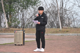 2022年度国家奖学金获得者、公司团委副书记、企管201班本科生王杰同学做了国旗下的演讲,他提出青年要有三当:“当坚定理想、当担当有为、当奋斗不息”,号召同学们立志做有理想、敢担当、能吃苦、肯奋斗的新时代青年,将国家命运与个人命运紧密相连。