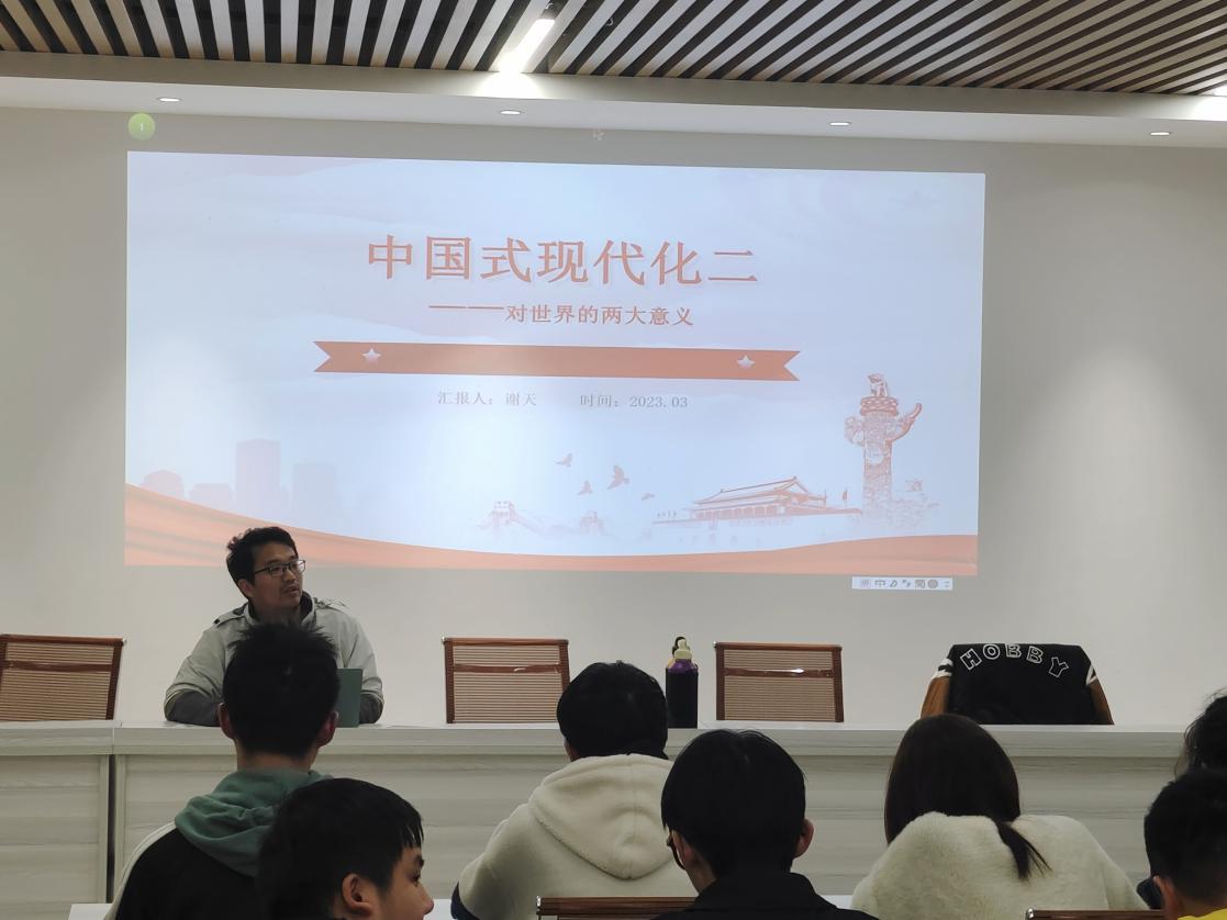 为深入学习贯彻党的二十大精神,增强思想政治教育,进一步用党的创新理论指导实践、推动工作,2023年3月5日,365英国上市集团员工第八党支部以讲党课的方式开展了一场“中国式现代化对世界的伟大意义”为主题的学习活动,本次活动由365英国上市集团副经理谢天老师授课,员工第八党支部书记江柯桥及员工第八党支部全体党员参加。