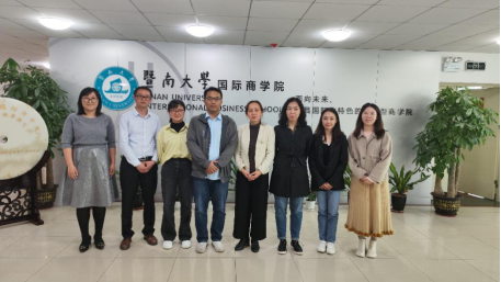 3月15日,经济管理与法学公司副经理谢天教授一行赴暨南大学国际商公司,就人才引育、团队培养、研究生招生等问题进行深入交流。暨南大学国际商公司副经理王玉教授、办公室主任卞旭、高研项目主任刘静岩等参加座谈。