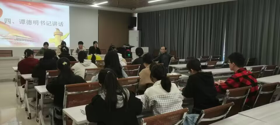 会议最后,谭德明作总结讲话。谭德明在讲话中指出党员的四个重要作用,第一发挥先锋模范作用,提高班级、公司的学风建设;第二发挥战斗堡垒作用,拥护组织领导、主动站在第一线;第三发挥桥梁作用,深入同员工活,主动向支部书记汇报近期自身以及同学的生活工作;第四发挥服务作用,积极参与公司的志愿服务活动。