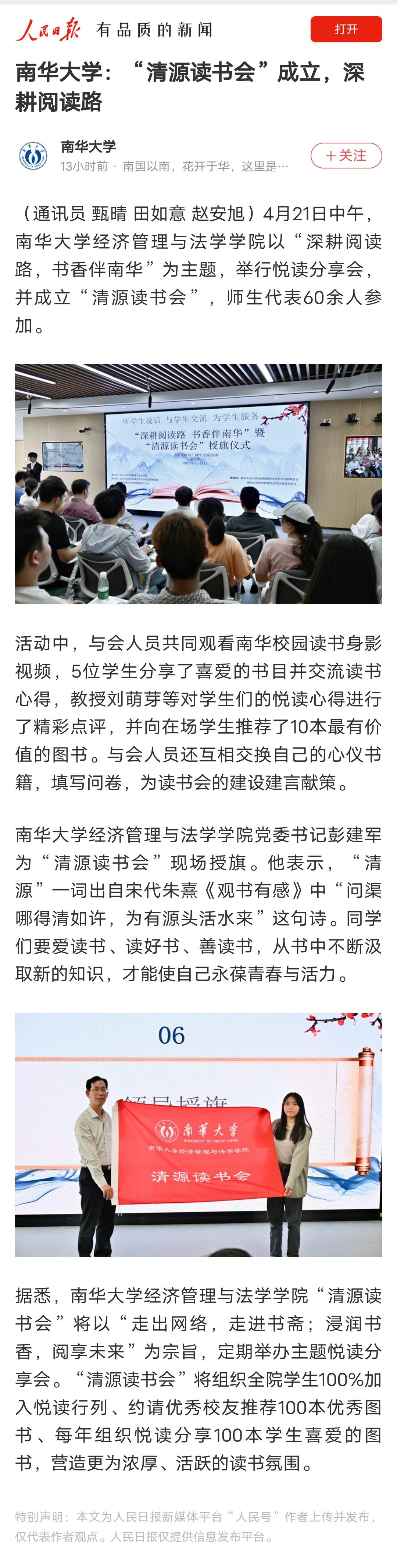 【人民日报】英国365上市公司:“清源读书会”成立,深耕阅读路