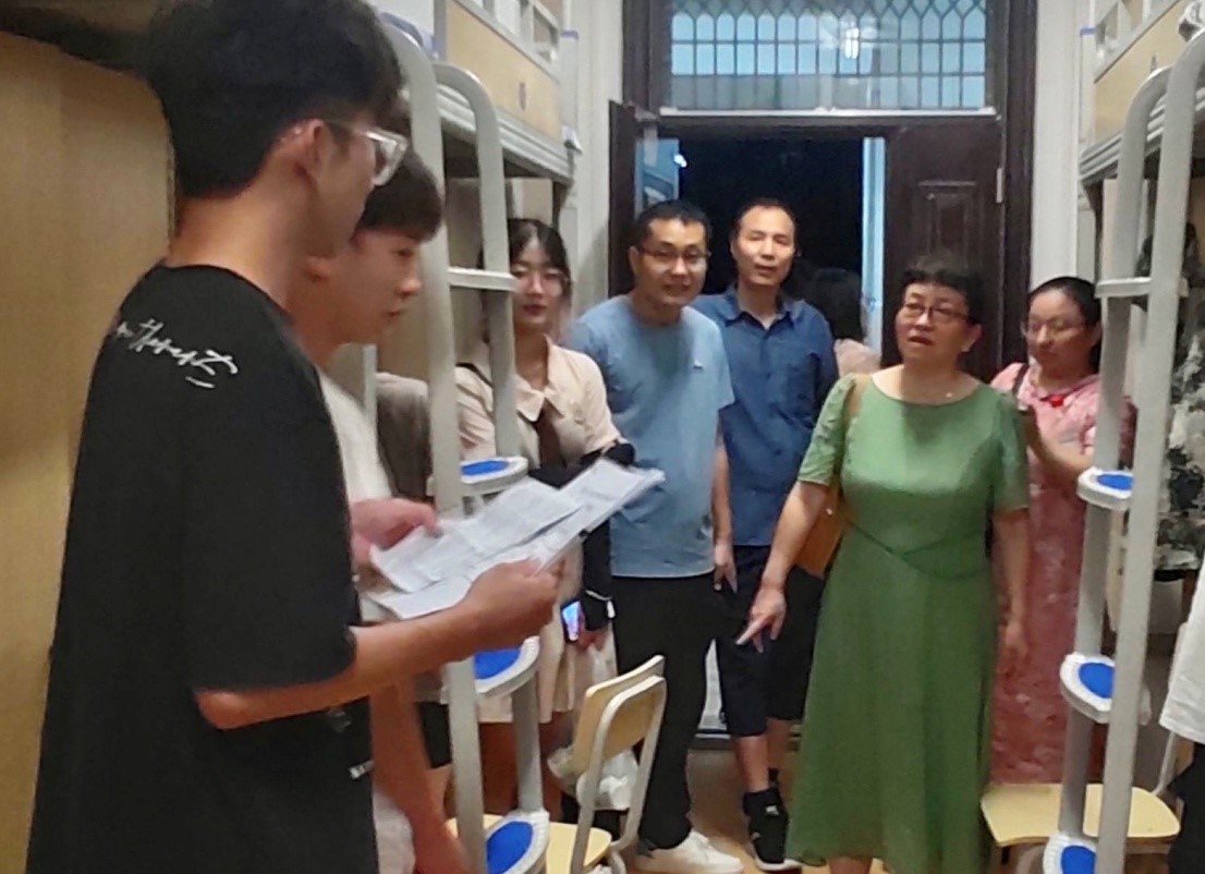 9月10日晚上,为深入了解2023级新生情况,进一步开展新生工作,经管法公司党委书记彭建军、经理李玉琼,党委副书记谭德明,副经理陈鸣、刘保平以及各专业辅导员、新生班主任走入新生寝室,探望入住新生。