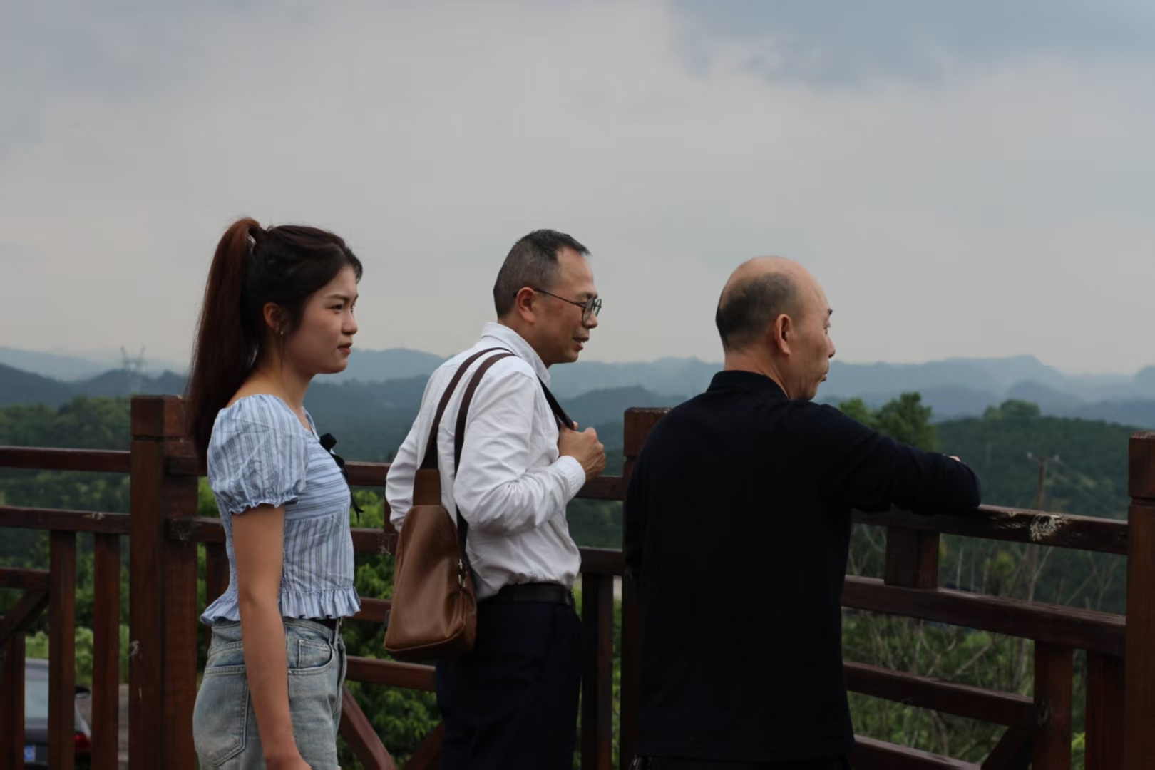 随后,调研团队来到永兴冰糖橙集中种植基地。一行人站在视野开阔的观景台上,许主任结合基地全景,生动地介绍了冰糖橙的种植规模、先进种植技术的应用,以及近年来产量增长趋势。许主任着重提到:冰糖橙产业的蓬勃发展为当地创造了大量就业岗位,带动了众多农户增收致富,已成为乡村振兴的重要支柱产业。许主任的介绍让团队成员对永兴冰糖橙产业的规模效应和社会效益有了更直观深刻的认识。
