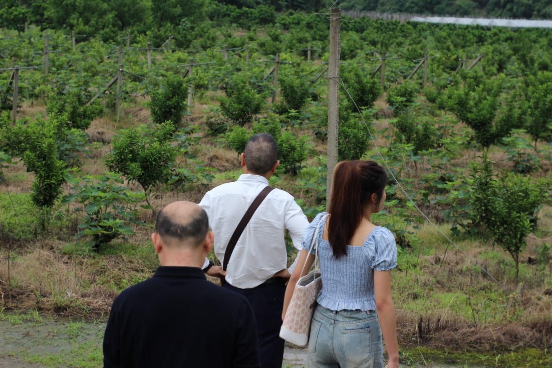 抵达永兴县后,在永兴县农业产业发展中心主任许孔旗的全程陪同下,调研团队开启了充实的考察之旅。调研团队首站来到永兴萃香合作社冰糖橙基地,放眼望去,橙树郁郁葱葱,生机勃勃。调研团队穿梭于果园之间,了解到了冰糖橙生长所需的土壤质地和气候条件,同时观察了灌溉系统运作及病虫害防治设施,对冰糖橙生长环境进行了初步的摸底。
