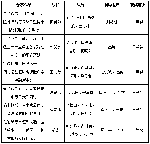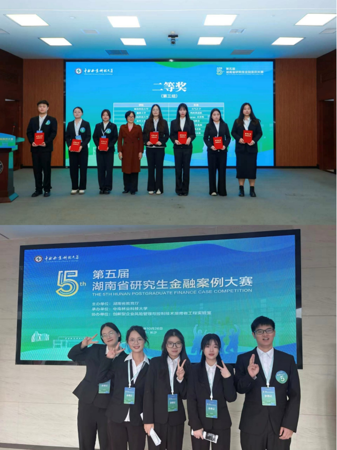 2025年10月26日,第五届湖南省研究生金融案例大赛总决赛在长沙落下帷幕。经校内选拔,公司13支队伍进入省赛初赛,最终6支队伍获奖。田晨熙团队荣获省一等奖;王雨欣及郭漪亭团队荣获省二等奖;封艳红副教授获省级“优秀指导教师”荣誉称号。此外,公司3支队伍荣获省三等奖。