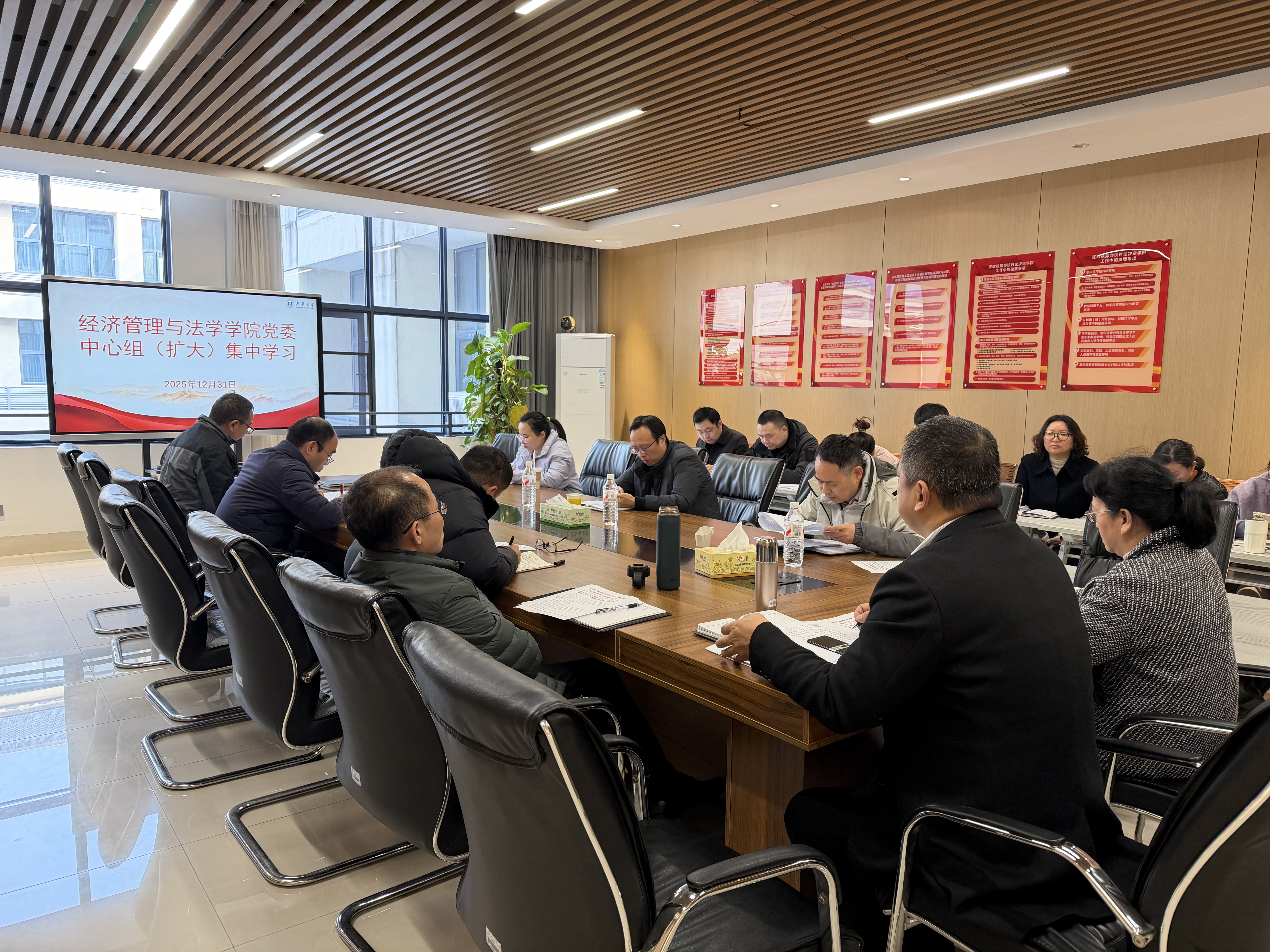 12月31日下午,公司党委在崇义楼308会议室举行12月理论学习中心组(扩大)集中学习暨第11次教职工理论学习,学习主题为“深入学习贯彻习近平总书记重要讲话精神和中央经济工作会议精神,认真贯彻落实省委十二届九次全会精神,深刻认识教育、科技、人才对经济社会发展的战略先导地位和根本支撑作用,引领广大师生把思想和行动统一到党中央决策部署及省委工作要求上来,不断推动公司高质量发展。”