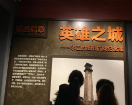 一进入衡阳抗战纪念馆,映入眼帘的是“血染衡岳”主题雕像,象征着衡阳战士和人民众志成城,不怕牺牲,共抗外敌的不屈脊梁。在解说员的讲解下,我们共参观了管内的四个展厅,分别是:第一篇章——战略之城、第二篇章——大义之城、第三篇章——悲壮之城、第四篇章——英雄之城。其中让我们最动容的是第三篇章——悲壮之城。它讲述的是1944年6月22日至8月8日,日军先后调集共10余万兵力进攻衡阳城,中国守军奋起反击,与数倍于己的敌人展开激战,打响了震惊中外的衡阳保卫战。衡阳人民在中国共产党衡阳地方组织的广泛动员下万众一心,同仇敌忾,与守军一道誓死保卫衡阳,用生命和鲜血谱写了一曲悲壮之歌。