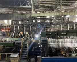 紧接着,我们置身一线生产区间内,即华菱衡钢“明星”厂区——180分厂,一入厂区,耳边充斥巨大的轰鸣声,流水线上的机器不断的在运作,一根根烧得通红的钢管从炉中滚出,冷却中蒸汽升腾,紧接着再被切割成固定的长度......高度机械化的生产模式同厂区内工作人员认真的打磨每根钢轨的情景汇写成一幅蓝图,我们的企业在奋起博飞,我们的祖国也必将繁荣兴盛。