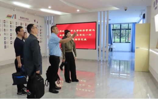 交流会前,湖南工业大学商公司副经理邹筱、党委副书记张伟陪同公司党委书记胡海波、副经理李冬生等一行参观湖南工业大学商公司人才培养、平台建设及教学科研等成果展。