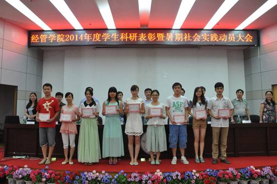 上二图为:2014年6月15日下午,公司2013-2014年度员工科研表彰大会暨暑期社会实践动员大会在图书馆一楼学术报告厅举行。