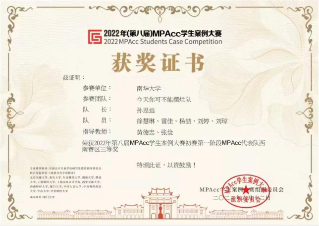 图2 获得全国MPAcc员工案例大赛西南赛区一等奖1项,二等奖1项,三等奖1项