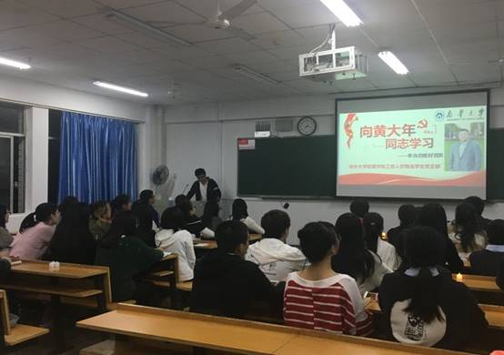在党政理论知识学习这一环节中,我们首先观看了视频《学习黄大年》,学习了优秀党员黄大年的先进事迹,随后回顾了党走过的辉煌的九十年历程,并学习了十九大的内容和精神。在这一环节中同学们认真学习,颇有收获。