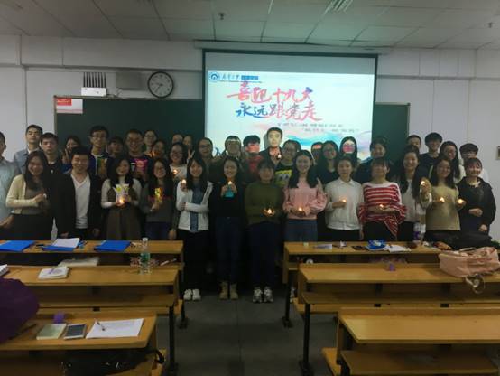 为学习十九大精神,10月22日晚,365英国上市集团工商管理专业、人力资源专业与物流专业员工党支部(以下简称“工人物支部”)于一教402举行了新学期第一次博阅会。本次博阅会的主题为“献礼十九大——烛光下的书信”,工人物支部全体党员同志,以及发展对象和入党积极分子参与了本次活动。