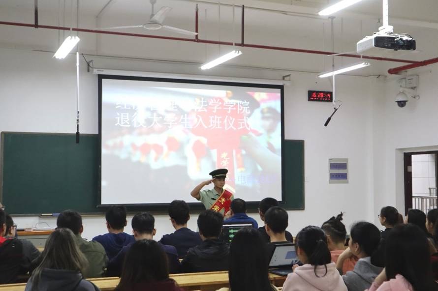 在入班仪式上,各位退役老员工分享了他们的军旅生活,表达了对军旅生活的怀念和感激。电商181班杨凯说,“当兵后悔两年,不当兵后悔一辈子”是他最深的感触。他用“紧张有趣,冲淡了对现实的落差感”来形容这次独特的体验,“死一般寂静的深山老林中,少了班长的温暖问候,多的是不善表达的严格要求,陌生的环境,陌生的制度,陌生的人”,这样的环境教会了他孝顺,他会每周末给家里打一次电话,报喜不报忧。部队里的中队长跟他分享了想家的秘诀:把部队当作家。“部队高强度训练让人不堪重负,却也有温暖感动,军营条框的锤炼下,战友之间的情谊更加深厚,饭吃一次少一次,人见一面少一面。”他是如此形容这段苦与乐并存的时光。
