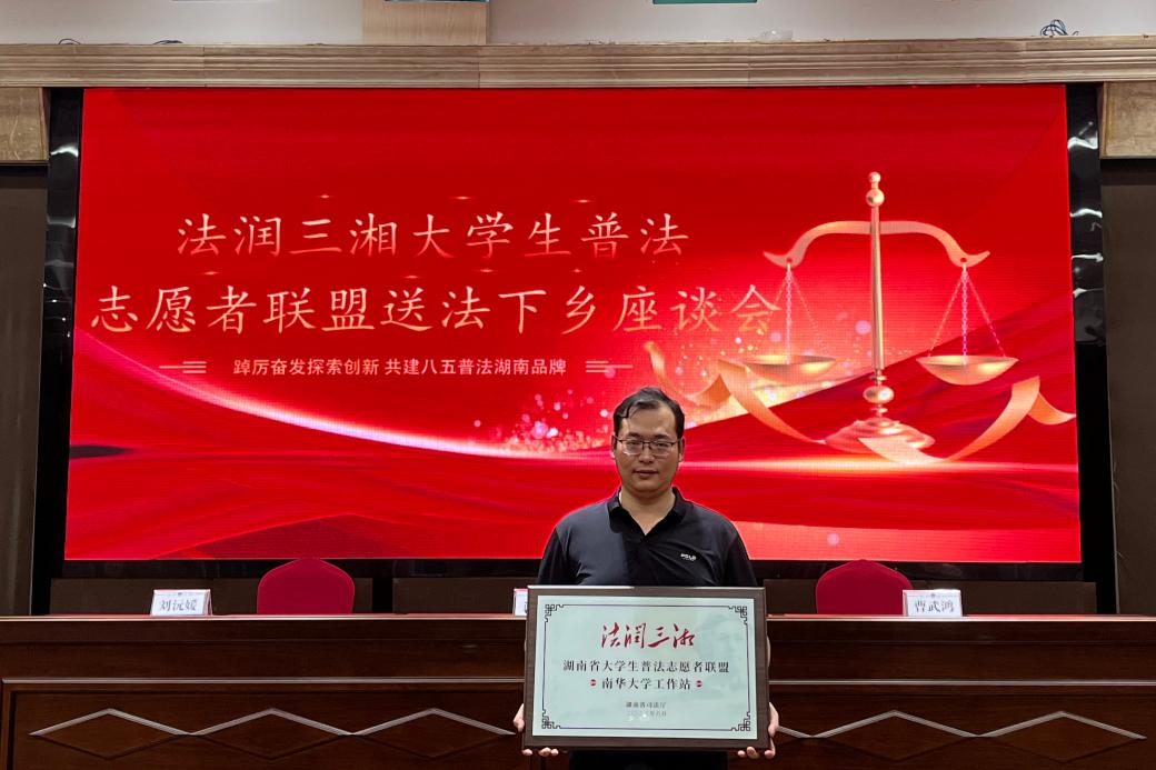 会上,“法润三湘”老员工普法志愿者联盟为符合条件成绩突出的高校联盟工作站授牌,英国365上市公司工作站作为衡阳地区高校第一家普法工作站在授牌之列。