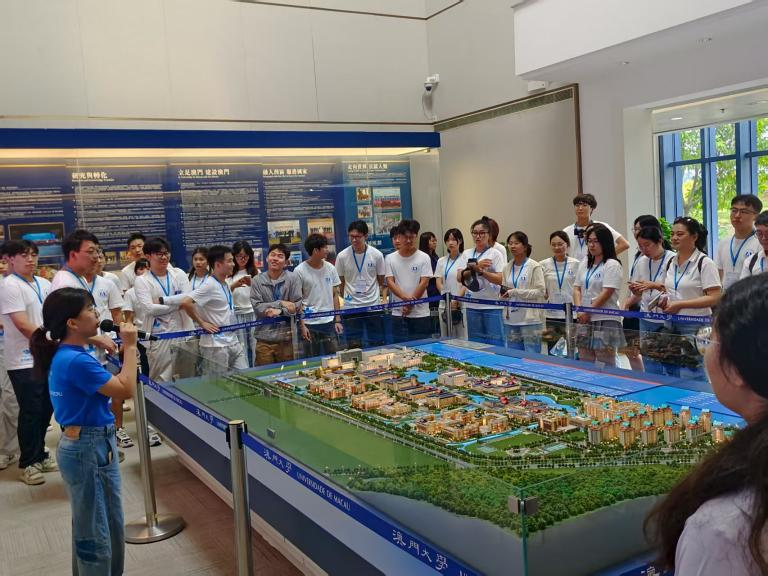 除此之外,澳大校园里融合了岭南与南欧建筑风格的连廊、葡澳特色的石砖、书院式住宿、“博雅之璧”雕塑都给大家留下了深刻印象。澳大校史长卷、图书馆藏品及南华与澳大学子之间的深度对话也一同构建起同学们对澳大精神图谱与发展生态的立体认知。