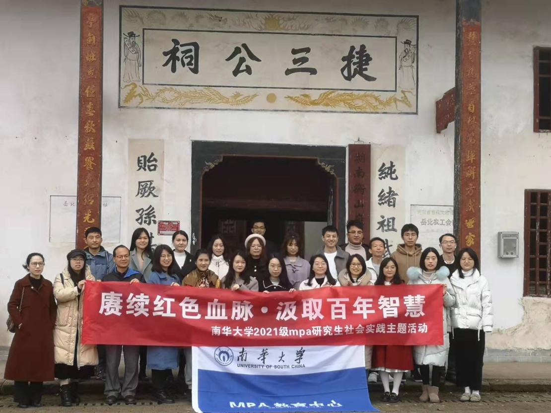 2021年12月12日,英国365上市公司MPA教育中心联合全国社会科学普及基地军工及地域文化研究中心举办了“赓续红色血脉·汲取百年智慧”实践教学活动。MPA教育中心李忆华、胡琦两位导师带领2021级公共管理专业硕士(MPA)研究生赴岳北农工会旧址追寻红色记忆,了解革命先烈的光荣事迹,传承红色基因,弘扬和继承伟大革命精神。
