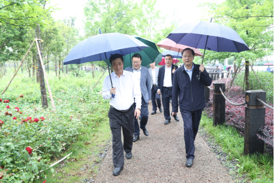 在雨母校区,肖启斌一行先后参观了玫瑰园、药植园、雨母楼东侧景观园、镜湖等场所,对花园式校园优美的育人环境给予了高度赞扬。