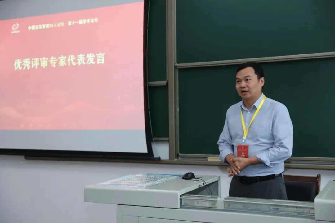本届论坛的颁奖环节由西南交通大学公共管理公司副经理彭川宇主持。清华大学应急管理研究基地副主任吕孝礼汇报了本届论坛论文的评审情况。本届论坛共评出6位优秀评审专家和6篇优秀论文,颁奖嘉宾现场为获奖人颁奖。优秀评审专家获得者代表山东大学政治学与公共管理公司马永驰教授和优秀论文作者代表河海大学商公司卢良栋副教授分别发表了获奖感言。