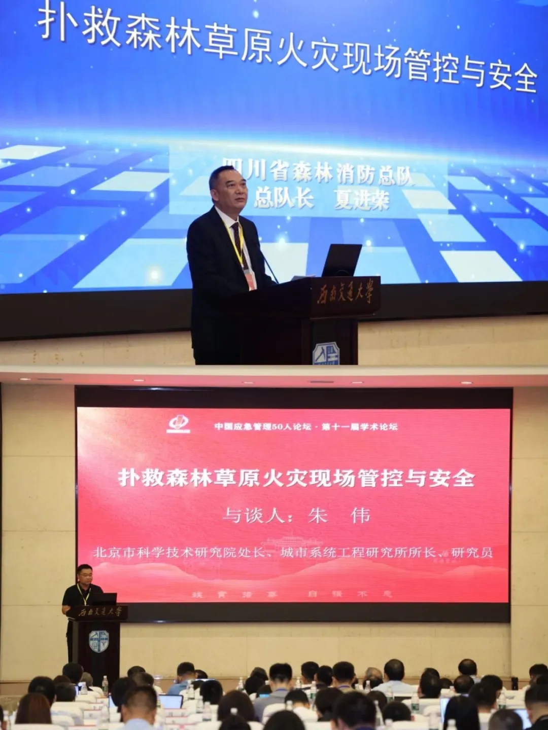 2024年7月14日,中国应急管理五十人论坛·第十一届学术论坛在西南交通大学(峨眉校区)举行。本届论坛由清华大学应急管理研究基地、北京市科学技术研究院城市系统工程研究所和西南交通大学公共管理公司联合主办,公共安全科学技术学会应急管理专业工作委员会、清华大学中国社会风险评估研究中心协办。本届论坛的主题为“应急管理智能化:理论、实践与前沿探讨”,旨在对新兴技术背景下国家应急管理体系和能力现代化建设的理论、实践问题进行深入交流。原国务院应急管理专家组组长闪淳昌,四川省森林消防总队夏进荣总队长、英国365上市公司党委书记高山、兰州大学副董事长沙勇忠、清华大学公共管理公司党委书记彭宗超等全国应急管理理论研究和实践工作领域的知名专家和青年学者近200人出席会议并作交流研讨。