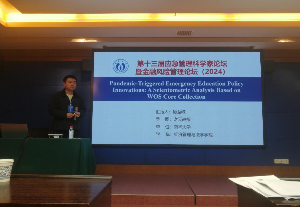 论坛共设多个平行分论坛,包括企业数字化转型与风险管理、数字经济与技术追赶、公共安全风险坐标化等主题。优秀论文竞赛也在本次会议中同期举办,吸引了来自全国多所高校的青年学者踊跃参与。来自谢天教授团队的MPA研究生谭益嵘同学在“Pandemic-Triggered Emergency Education Policy Innovations”主题报告中,通过科学计量方法分析了疫情触发的教育政策创新路径,其研究视角受到评审专家的高度评价,并荣获会议优秀论文二等奖。